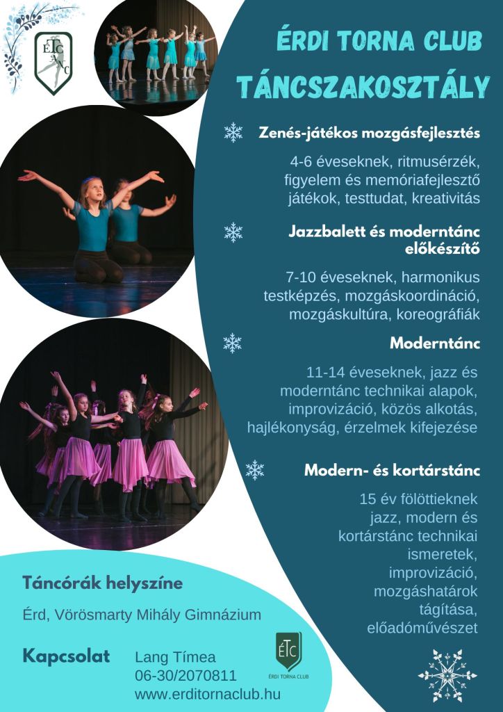 Az Érdi Torna Club Táncszakosztálya felvételt hirdet több csoportjába is!